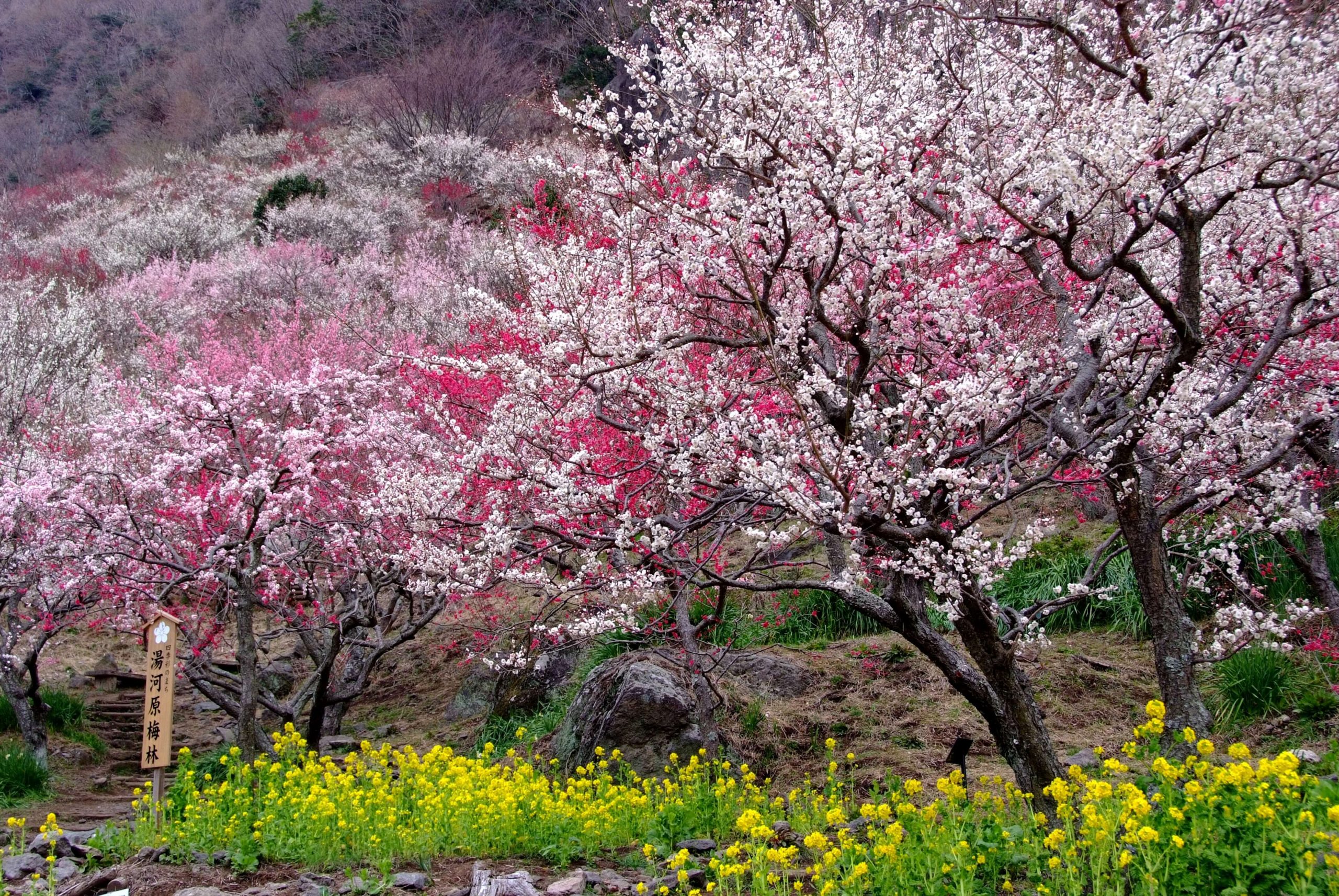 約4,000本もの梅が咲きほこり、園内はほのかな梅の香りに包まれる湯河原の春の風物詩「梅の宴」。